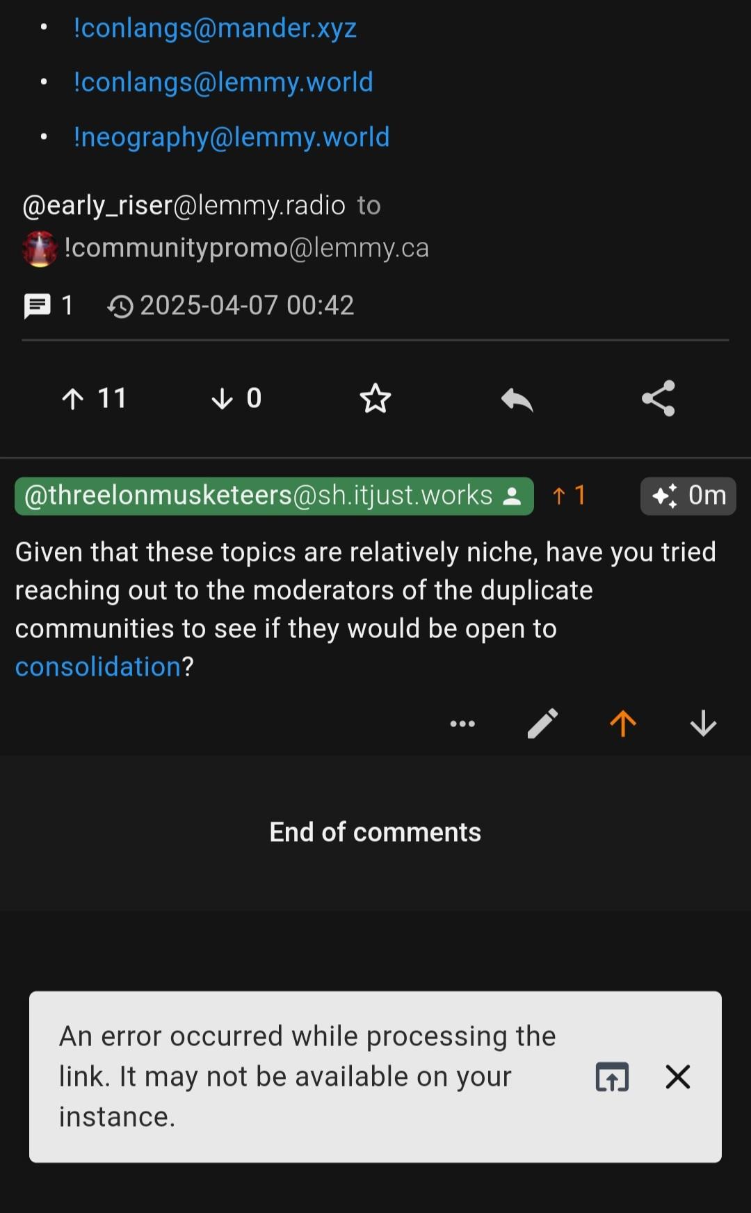 Hey everyone, Thunder v0.8.0 is now available! This release introduces initial PieFed support and includes significant under-the-hood improvements to enable compatibility with PieFed, along with the usual performance enhancements and bug fixes. As always, if you encounter any issues or have feedback, please share them with the Thunder community or on GitHub.